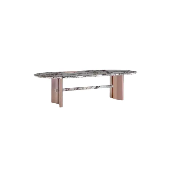 天然威尼斯棕/宝格丽紫岩板复合玻璃面+8K不绣钢镜光面电镀玫瑰金脚